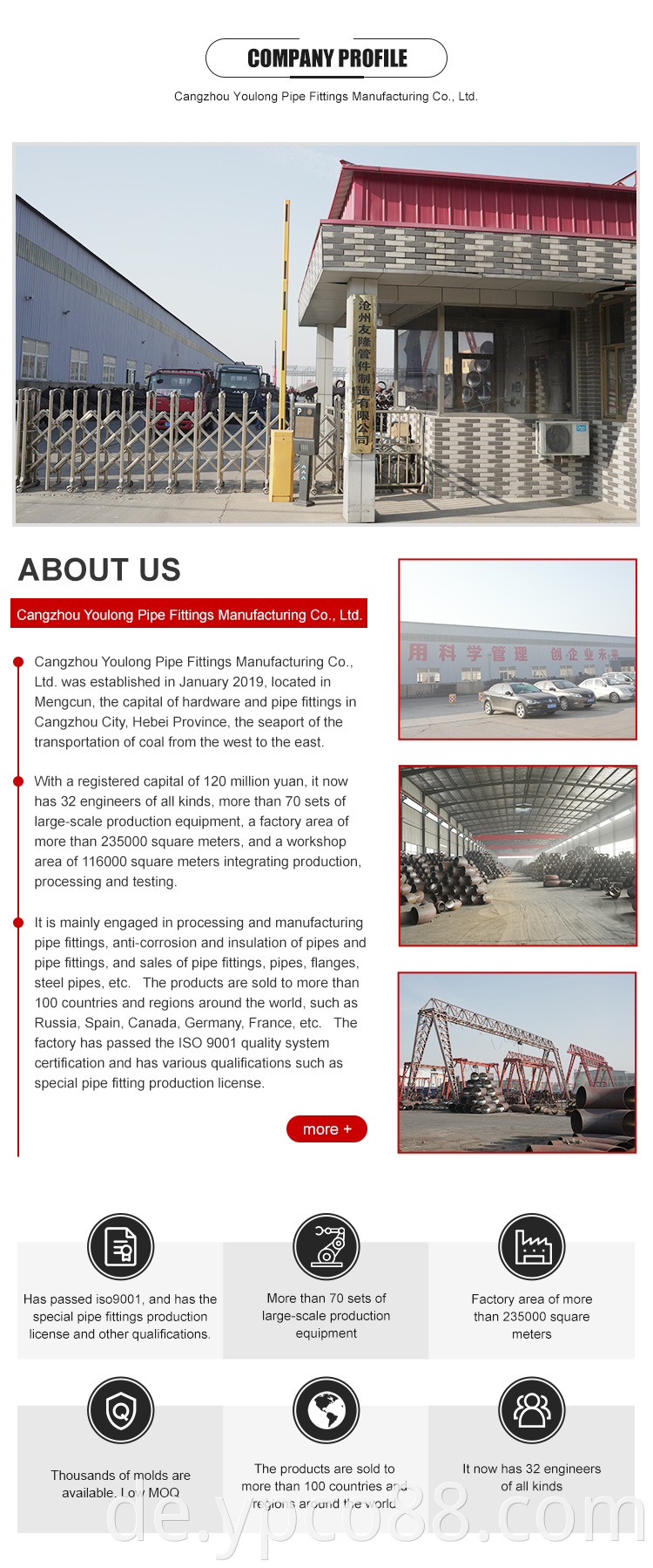 Stainless steel: ASTM A403-WP304, WP304L, WP304/304L, WP304H, WP316, WP316L, WP316/316L, WP321, WP321H, WP347, WP347H