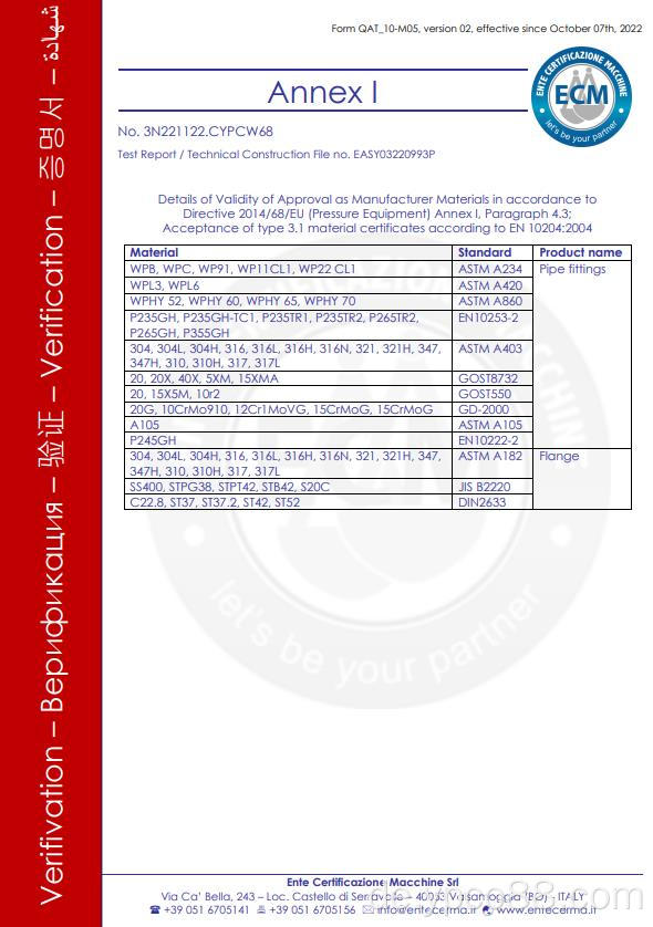 Geschmiedetes Hochdruck -T -Shirt 304 Edelstahl -T -Shirt